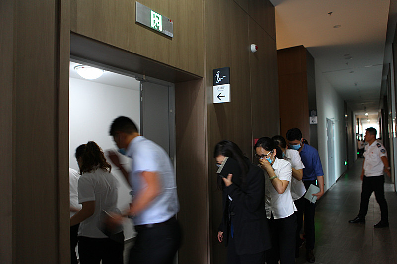火災(zāi)逃生演練中,員工們緊張有序撤離